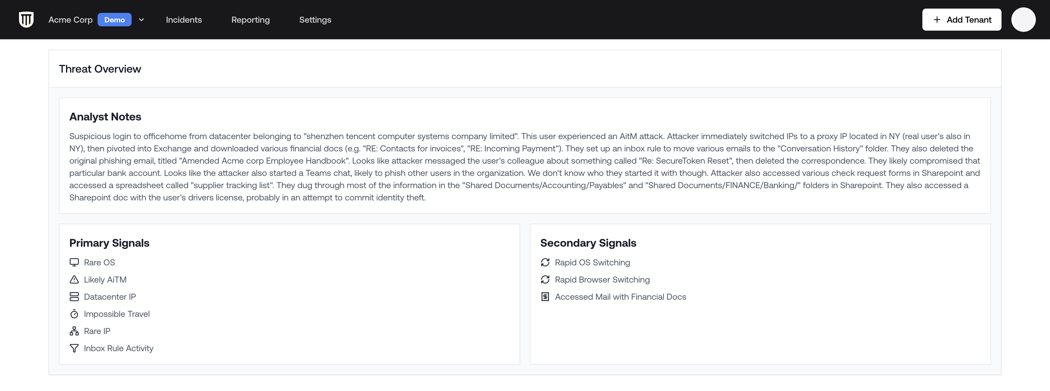 When an account compromise occurs, it’s critical to understand exactly what the attacker did. Petra Security provides comprehensive visibility into attacker actions through the incident page. This guide walks you through how to investigate attacker activities within a compromised account.You can find this functionality in the demo tenant by navigating to an incident from the Incidents